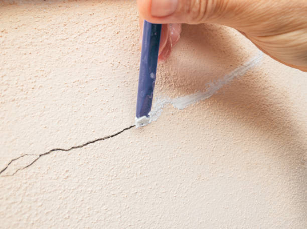 Avant toute mise en peinture, une préparation approfondie des surfaces a été effectuée : nettoyage, traitement des fissures et reprise des zones abîmées afin de garantir une parfaite adhérence.